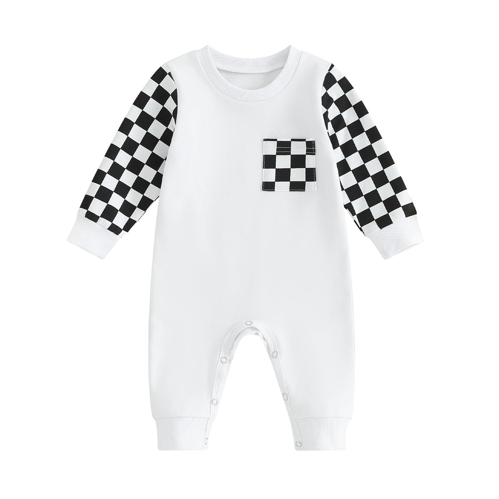 Checkerboard Plaid Color Matching Sleeve Pocket Jumpsuit