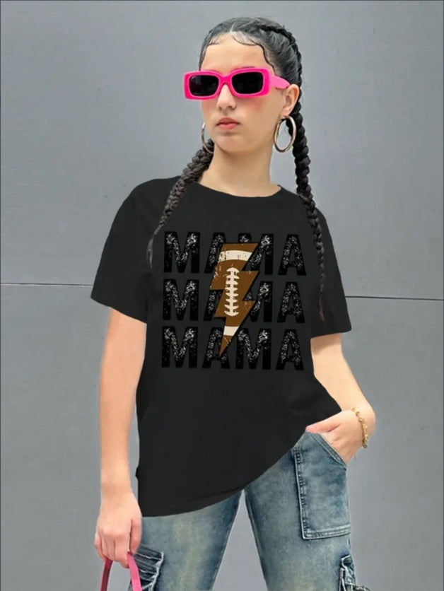 Chic 'MAMA' Graphic Tee For Girls - Casual Sporty Crew Neck, Soft Machine Washable - Perfect Summer Top