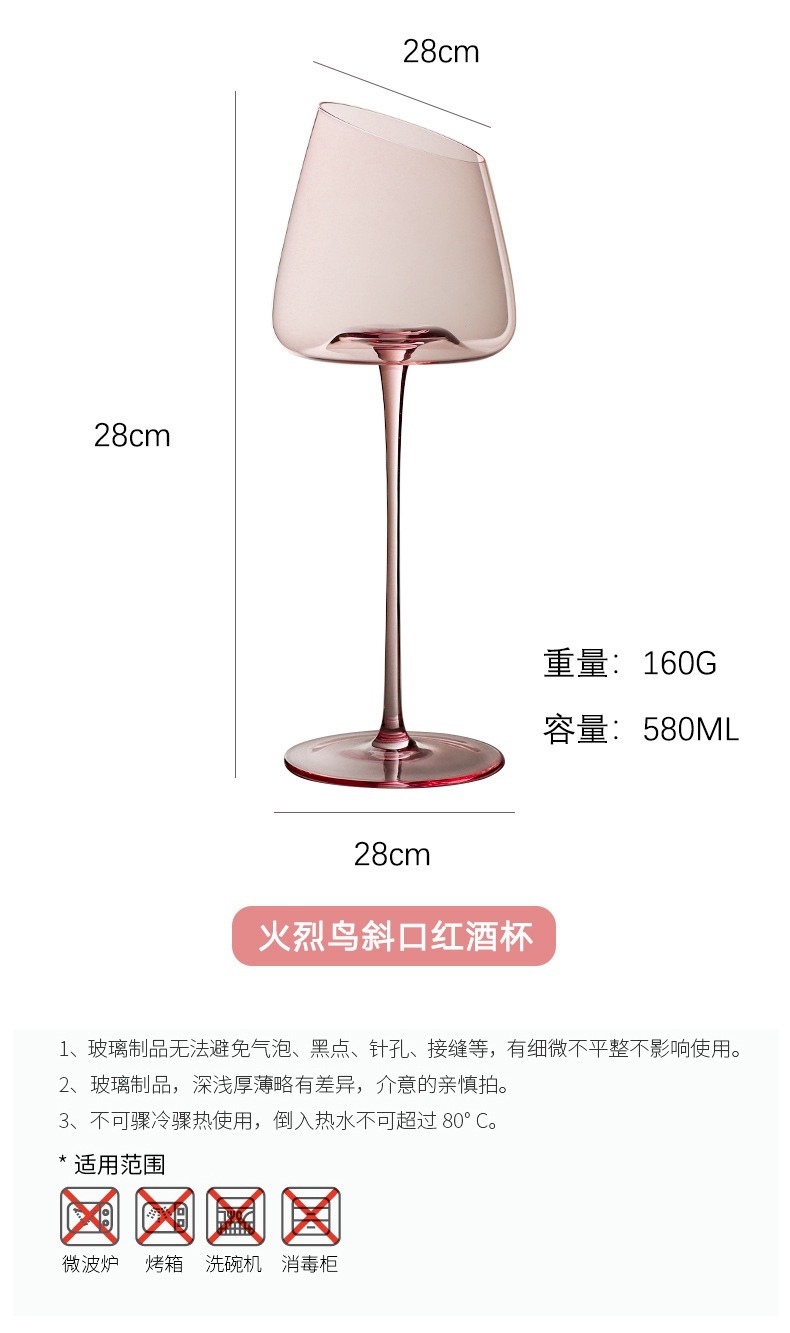 Flamingo Red Wine Oblique Mouth Glass Tall Cup
