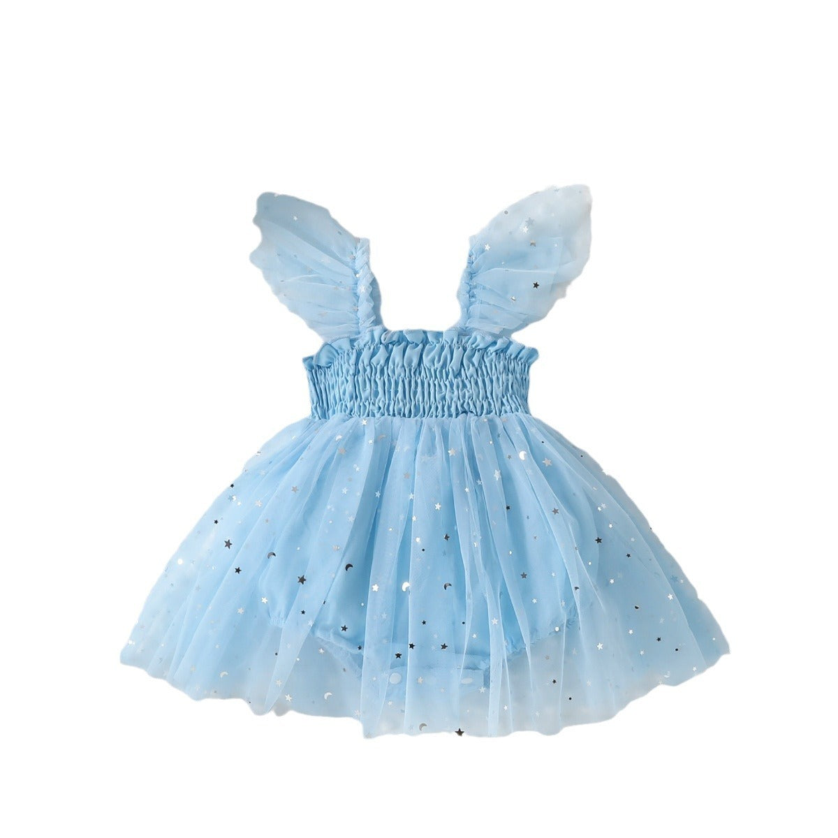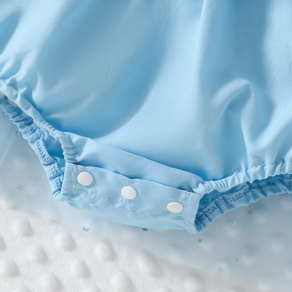 Girls' Mesh Flounced Sleeve Shoulder Princess Onesie