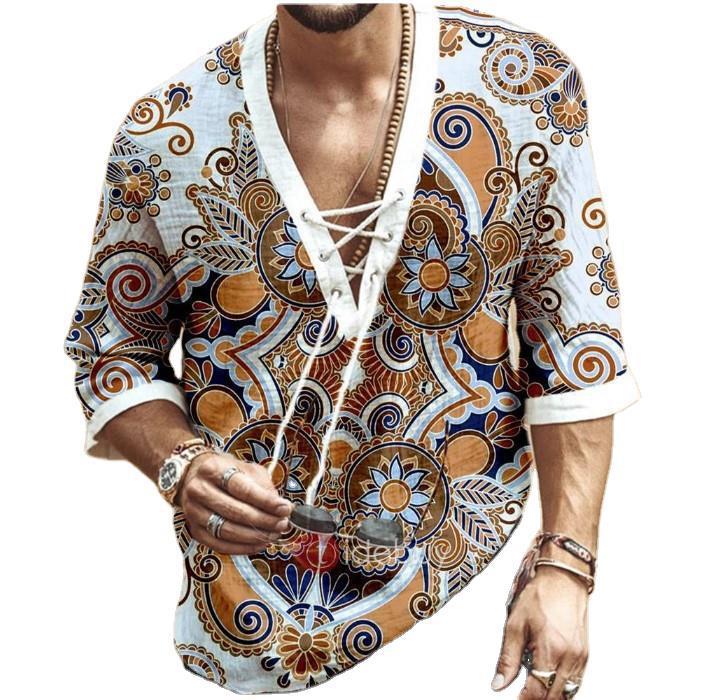 Men's Chest Tie Eyelet T-Shirt Print Lining