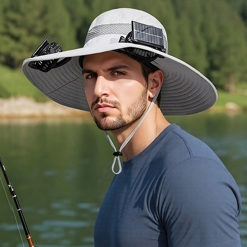 Solar-powered Fan Hat With Long-lasting Lithium Battery, Men's Outdoor Fishing Hat With Fan, Sun Protection Fisherman's Hat